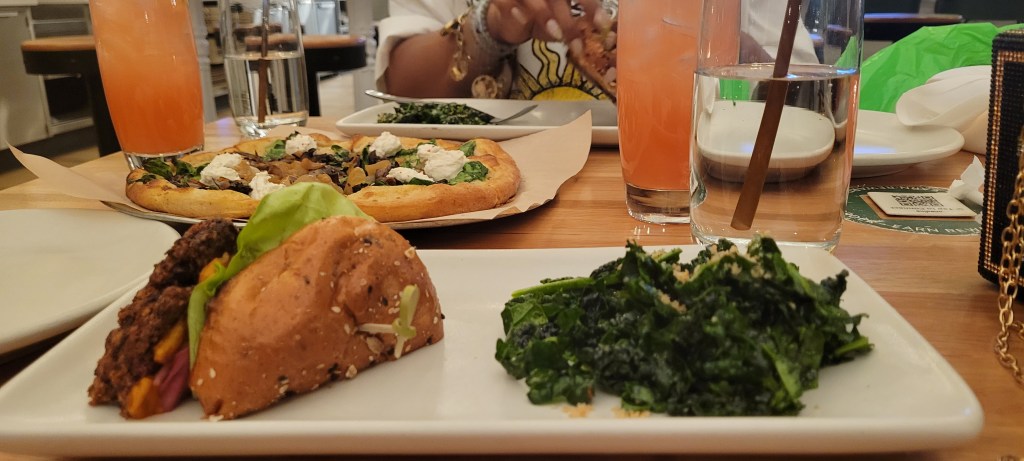 Korny Vibes is one of the cool vegan restaurants in Houston. The menu is comfort food and it’s pretty good.